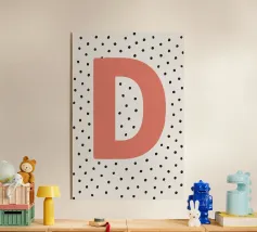 Duidelijke vorm, sterke uitstraling: de letter "D" in rood op een zwart stippenpatroon maakt een fris statement op je muur. Als kinderkamerdecoratie, moderne thuiskunst of een cadeau met een persoonlijk tintje - deze stijlvolle typografieposter is perfect voor elke kamer. Ideaal om te combineren met andere letters uit de serie voor woordcreaties of namen op maat.