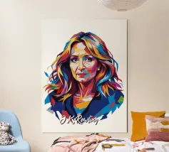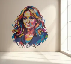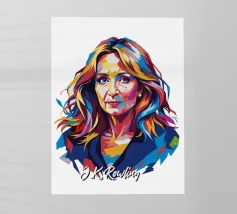 Vier de magische wereld van de literatuur met dit levendige WPAP Pop Art-ontwerp met J.K. Rowling, de geliefde auteur van de Harry Potter-serie. Door gebruik te maken van gedurfde geometrische vormen en een levendig kleurenpalet, stelt dit kunstwerk Rowling opnieuw voor in een moderne, abstracte stijl. De WPAP (Wedha's Pop Art Portrait) techniek vangt haar creatieve geest en de betoverende erfenis die ze heeft gecreëerd met haar verhalen. Perfect voor boekenliefhebbers, fans van fantasy literatuur en kunstliefhebbers, dit ontwerp dient als een uniek eerbetoon aan een van de meest invloedrijke auteurs van onze tijd.