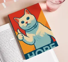 Als het leven grijs aanvoelt, brengt deze kat kleur. Met zijn vrolijke duim omhoog en heldere regenboogachtergrond is deze cartoonkat een therapeut in zakformaat aan je muur. Of je nu een kinderkamer inricht, een creatieve studio of je keuken - deze poster zegt wat we allemaal moeten horen: Alles komt goed. Helder, schattig en vol goede vibraties.