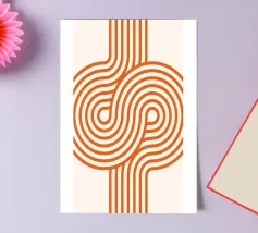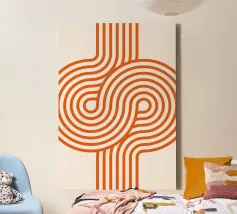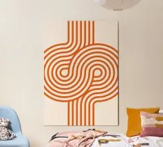 Stap terug in de tijd met deze groovy retro-moderne kunstprint! Met een betoverend patroon van doorlopende, lusvormige oranje lijnen tegen een subtiele gebroken witte achtergrond. Dit stuk is geïnspireerd op grafisch design uit de jaren 70 en voegt een dynamische, vloeiende energie en een vleugje vintage flair toe aan elke kamer. Het gedurfde maar eenvoudige ontwerp maakt het een veelzijdig statement. Onze hoogwaardige digitale kunst van 7000 x 5000 pixels, 300 dpi zorgt voor een afdruk van hoge kwaliteit met scherpe, levendige oranje lijnen, perfect voor een opvallende muur.