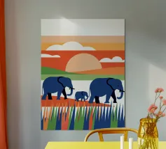 Geniet van een kleurrijke natuurillustratie met een spin in haar web omringd door bladeren. Met levendige kleuren en een uniek ontwerp brengt dit kunstwerk een vleugje natuur en artistieke flair in je interieur.
