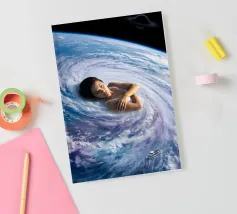 Duik in een droomachtige fusie van surfcultuur en kosmische fantasie met dit betoverende kunstwerk. Een eenzame surfer drijft vredig op een surfplank in het midden van een levendige nevel, omringd door kolkende oranje, blauwe en rode kosmische wolken. Tegen de achtergrond van een sterrenstelsel combineert deze scène sereniteit, verkenning en surrealistische verbeelding. Perfect voor liefhebbers van ruimtekunst, surfesthetiek en gedurfde inspirerende muurdecoratie. Ideaal voor slaapkamers, creatieve studio's en moderne interieurs die op zoek zijn naar een uniek en opbeurend visueel statement. Geef je ruimte een buitenaards tintje met dit fascinerende ontwerp