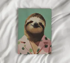 Een langzame en rustige luiaard, gekleed in nette kantoorkleding en met kalm zelfvertrouwen naar de werkplek.