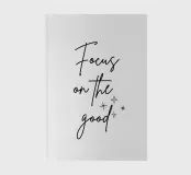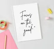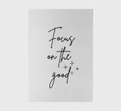 Klassieke quote "Focus op het goede" in zwart-wit.