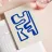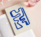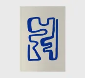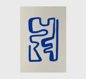 Een gedurfde, blauwe abstracte vorm tegen een effen achtergrond. De vorm bestaat uit een reeks verstrengelde lijnen en rondingen die een gevoel van beweging oproepen of misschien een gestileerd karakter of symbool.