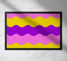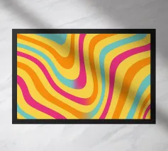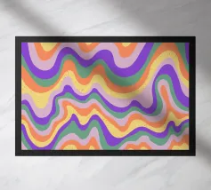retro patroon, abstracte golven, groovy design, geel en lavendel, psychedelische kunst, kleurrijke achtergrond, mid-century modern, funky behang, levendig decor, trippy design, jaren 70 esthetiek, gedurfde abstracte vormen