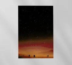 Descent of two skydivers over an alien red desert planet backlit folie