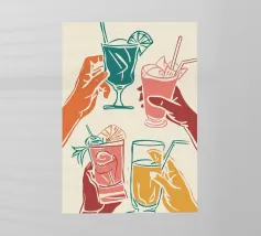 Een luchtig en grillig ontwerp dat het plezier viert van ontspannen met vrienden, met speelse elementen zoals rinkelende glazen en kleurrijke accenten. Met een levendig, vrolijk kleurenpalet straalt dit kunstwerk een leuke, zorgeloze energie uit - perfect voor mensen die houden van gezelligheid en genieten van de kleine momenten in het leven. Ideaal voor bars, keukens, lounges thuis of als cadeau voor mensen die van gezelligheid en goed gezelschap houden!