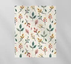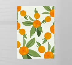 Dit aquarelpatroon in duindoorn is visueel opvallend. Het gebruik van oranje en groen creëert harmonie en geeft een gevoel van natuurlijkheid. Het patroon creëert beweging en energie en de herhaling van de duindoorn voegt eenheid toe aan het kunstwerk.