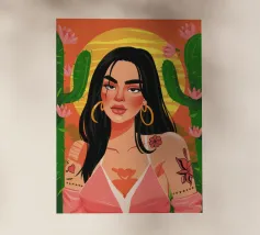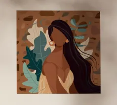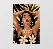 Deze expressieve poster combineert gestileerde tropische sensualiteit met grafische verfijning. In krachtige boho-beige tinten en duidelijke contrasten doet het denken aan de esthetiek van Art Deco en iconische mode-illustraties. De zelfverzekerde houding en bloemendetails voegen glamour en kracht toe aan het motief - een vrouwelijk statement dat zowel exotisch als elegant is. Ideaal voor moderne kamers en mensen met gevoel voor stijl en reislust: wie eenmaal in de Zuidzee is, gaat nooit meer terug.