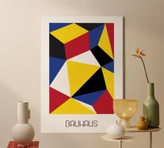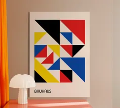 Een dynamische en betoverende Op Art digitale poster geïnspireerd door de De Stijl en Bauhaus bewegingen. Het ontwerp heeft een raster van afwisselend zwarte en witte driehoeken die een sterk gevoel van driedimensionale diepte en een geruit schaduwpatroon creëren. Kleine vierkantjes in krachtige primaire kleuren - rood, blauw en geel - en grijs lijken boven het oppervlak te zweven en werpen duidelijke schaduwen. Deze indrukwekkende visuele illusie is een modern statement. Deze hoogwaardige digitale download heeft 7000 x 5000 pixels bij 300 dpi, wat zorgt voor een uitzonderlijke helderheid en superieure afdrukkwaliteit.