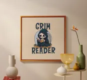 A little reaper sits before a tombstone, wrapped in his dark cloak, fully immersed in reading. The “Grim Reader” pun plays with the words reaper and reader, creating the perfect fusion between the dark and the literary. Perfect for lovers of books, clever humor and a touch of gothic aesthetic!