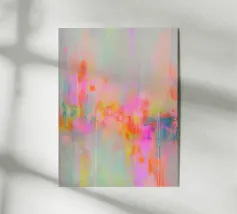 This abstract structural artwork depicts intertwining areas of colour in neon pastel pink, yellow, blue, green and pink. The soft brushstrokes and harmonious pop art colour composition create a vibrant, dreamlike atmosphere. The motif appears modern, light and emotional, inviting free interpretation.