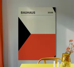 Een abstracte driehoek in Bauhaus-kleuren die de letter "A" en de piramide van evenwicht symboliseert. Dit ontwerp weerspiegelt harmonie, structuur en creatieve helderheid - perfect voor wie houdt van minimalistische esthetiek en betekenisvolle geometrie.