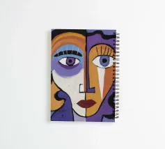 This artwork features a face with exaggerated features and bold lines. The background is a mix of purple and orange, creating a dramatic and elegant effect.