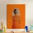er is een foto in mijn hoofd die elke herinnering aan jou bevat. ~ een vrouw die een oranje jurk draagt met een vintage camera als hoofd levendige oranje achtergrond met retro bloemenelementen.