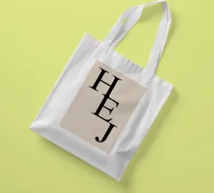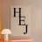 A chic and welcoming art print featuring the Swedish greeting "HEJ" in an elegant, oversized black serif font. Set against a warm neutral background, this sophisticated "Bold Type Co." piece offers a clean, Scandi-inspired statement for a modern entryway or hallway.