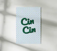 Pink background with pink lettering: CIN CIN.