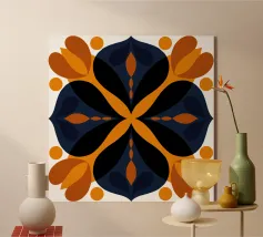 A geometric, abstract design inspired by ethnic patterns.