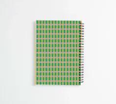 A repetitive pattern of intersecting lines creates a grid with alternating colors of green, pink, and orange. The geometric design forms a visually balanced and symmetrical effect.