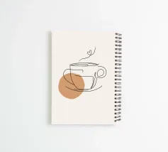 Coffee cup made of lines with a heart. Both background and light brown coffee stain. Generated with AI (Canva), among other things.