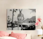 Absurde composities met mensenhonden. Mensenhonden die, net als wij, in Parijs, Los Angeles of Londen wonen en die, net als wij, gepassioneerd zijn door mode, auto's of helemaal niets. Honden die gedesillusioneerd, geamuseerd of geliefd zijn. Hippies en getatoeëerde honden. Kortom, honden die net als wij zijn. Of zijn wij zoals zij? Duik in de artistieke wereld van Dogland, een exclusieve collectie gewijd aan iedereen die zijn hond als een lid van de familie beschouwt. Hier is elke hondenposter een kunstwerk bedacht met humor, tederheid of elegantie. Of je nu een fan bent van buldoggen, teckels of corgi's, je zult de muurposter vinden die je huis zal laten blaffen van geluk. Geef je muren een honds accent met originele illustraties, afgedrukt op kwaliteitspapier, klaar om je interieur te sublimeren. Dogland is meer dan een winkel: het is een liefdesverklaring aan honden.