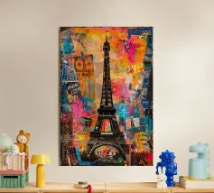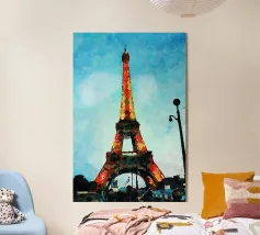 De Eiffeltoren is een herkenningspunt van de Franse hoofdstad Parijs en symboliseert wereldwijd heel Frankrijk. Een meervoudige belichting van de toren geeft een gedetailleerd beeld van de architectonische details. Moderne en heldere kleuraccenten creëren een decoratief kunstwerk.