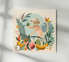 "Aap en druiven" is een geïllustreerde bewerking van het klassieke verhaal met een modern artistiek tintje.