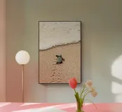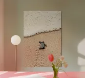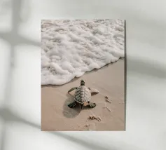 Een klein moment vol betekenis: deze emotionele natuurposter toont een pas uitgekomen schildpad op weg naar open zee - sporen in het zand, golven die naderen. Een symbool van moed, een nieuw begin en het begin van nieuwe paden. Ideaal voor natuurliefhebbers, dromers en iedereen die zich het wonder van hun eerste stapjes wil herinneren. Zachte kleuren, sterk statement - perfect voor rustige kamers.