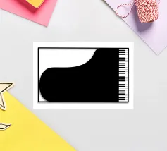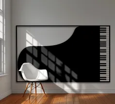 Abstract black-and-white composition inspired by the shape of a grand piano and its keyboard. Clean lines and strong contrasts give the motif a modern, elegant and timeless effect.