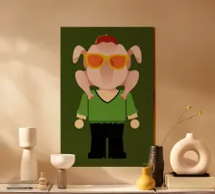 Deze grappige kunstdruk van een kalkoen is het perfecte Thanksgiving-hoogtepunt! Met zijn komische ogen en snavel brengt hij humor, pop-artstijl en feestelijke vrolijkheid aan je muur. Ideaal als Thanksgiving-decoratie, cadeau-idee of leuke blikvanger voor de herfst en de feestdagen.