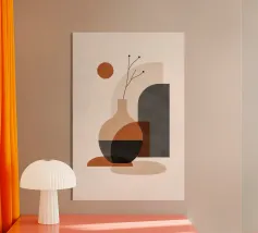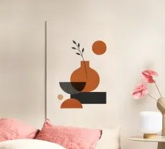 crescent moon vases leaf abstract shapes stars minimalist decorative items botanical element geometric shapes moon icon plant simple lines earthy tones red vase brown vase modern decor home decor contemporary art artistic illustration flat design