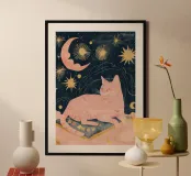 Boheemse Kat Print, Hemelse Maan Ster Print, Boho Animal