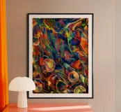 We gebruiken jouw ontwerp - in met de hand gemaakte lijsten. Klaar om op te hangen.