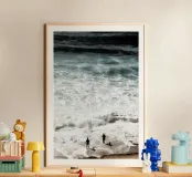 We gebruiken jouw ontwerp - in met de hand gemaakte lijsten. Klaar om op te hangen.