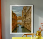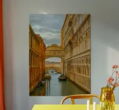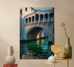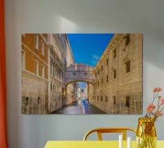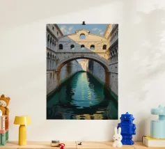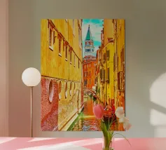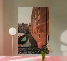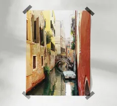 vintage kanaal tussen oude gebouwen poster
