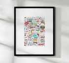 We gebruiken jouw ontwerp - in met de hand gemaakte lijsten. Klaar om op te hangen.
