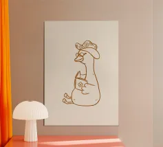 "Maak kennis met onze knappe eend, met een stijlvolle bril en een vrolijk kwaakje. Deze speelse print brengt een vleugje eigenzinnigheid en charme in elke kamer. Perfect om een leuke, luchtige toets aan je inrichting te geven!