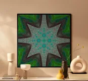 Complexe ster, texturen en vormen in turquoise/zwart/groen poster met houten frame
