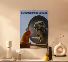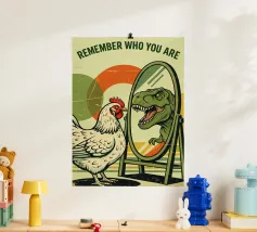 Breng je muren tot leven met deze unieke houten ingelijste kunstprint "Evolution Sucks" van DinoMike. Perfect voor liefhebbers van dinosaurus-thema's en humor. Dit 10 x 15 cm art printje voegt een speelse toets toe aan elke kamer, of het nu je woonkamer, kantoor of kinderkamer is. De combinatie van een indrukwekkende T-rex en een schattige kalkoen belooft gesprekken te starten. Ideaal als cadeau voor vrienden, familie of jezelf!