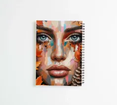 Acrylic painting of beautiful woman with leaves and acorns on face.