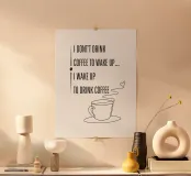 IK DRINK GEEN KOFFIE OM WAKKER TE WORDEN... IK WORD WAKKER OM KOFFIE TE DRINKEN poster met aluminium frame