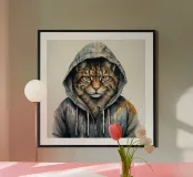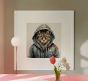 Aquarel Cartoon Lynx in een Hoodie poster met houten frame