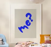 Bold, playful and unapologetically modern. “Me?” is a typographic statement that plays with scale, rotation and confident color contrast. Set in vibrant cobalt ink against a warm greige backdrop, this design balances attitude with refinement. It’s minimal, but not quiet. Graphic, but not chaotic. Perfect for contemporary interiors that lean toward bold accents, gallery-inspired layouts and expressive wall moments. A piece that doesn’t shout — it owns the space.