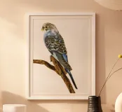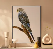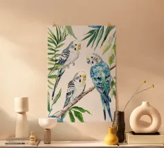 Parkieten symboliseren vrijheid, vreugde en verbondenheid met de natuur. Dit kunstwerk dient als dagelijkse herinnering aan de schoonheid en energie van de natuurlijke wereld en biedt een stukje tropen waar je het ook neerzet. Deze levendige afbeelding vangt de charme en levendige kleuren van deze sierlijke vogel, waardoor het een perfecte aanvulling is op elk interieur. Ideaal voor vogelliefhebbers, natuurliefhebbers of iedereen die op zoek is naar een vleugje tropische schoonheid. Deze foto is meer dan alleen een decoratie, het is een venster op de levendige wereld van de natuur die een vleugje vreugde toevoegt aan elke kamer.
