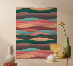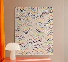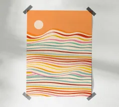 Een vrolijk en expressief abstract golvend patroon met vloeiende, golvende lijnen in een retro regenboog-geïnspireerd palet - van zacht oranje en warm roze tot gedurfd turquoise, aqua, geel en rood - allemaal zachtjes gelaagd op een warme ivoorkleurige achtergrond. Dit minimalistische maar impactvolle ontwerp viert de schoonheid van verschillen en de harmonie die gevonden kan worden in diversiteit. Een opvallend en opbeurend stuk dat trots, gelijkheid en zelfexpressie eert - perfect voor muurkunst, huisdecoratie en alledaagse accessoires die individualiteit en een kleurrijk ritme omarmen.