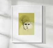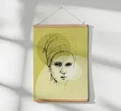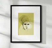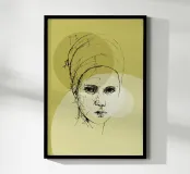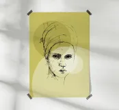 A calm and introspective portrait created with loose ink lines and soft geometric shapes. The drawing captures a quiet moment of focus, where thoughts settle and presence takes form. Imperfect lines and transparent layers give the piece a raw, contemporary expression that works beautifully in modern interiors