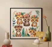 Schattige dierenillustratie met leeuwen en tijgers versierd poster met kunststof frame
