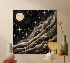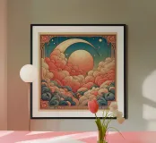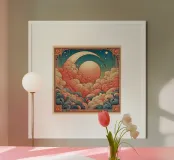 Zon, maan en roze-blauwe wolken in een betoverend Art Nouveau ontwerp.