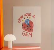Positieve quote met een edelsteen in een rood hart vakje met tekst in rood